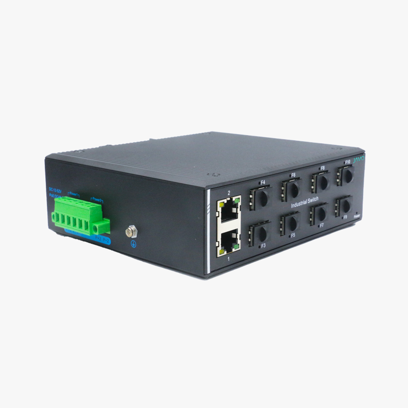 支持2个100Base-T/1000Base-TX电口和8个1000Base-X光口。产品符合FCC、CE、ROHS标准。JV-S82G-SFP交换机具有-40℃~80℃的工作温度,具有超强的坚固度能适应各种严苛环境,也可以非常方便的安置在空间紧凑的控制箱中。导轨的安装特性、宽温操作及拥有IP40防护等级的外壳及LED指示灯,使JV-S82G-SFP成为一个即插即用的工业级设备,为用户的以太网设备联网提供可靠、便捷的解决方案。