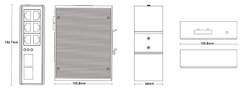 机械属性 | 外壳:金属材质 安装:DIN 卡轨式,壁挂式安装 重量:0.36Kg 尺寸:143.7 x 103.8 x 44mm(长 x 宽 x 高) |